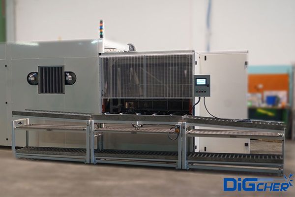 PT-6 SSDA 大軸承通過式清洗線采用動力輥子輸送上料,網(wǎng)帶帶動工件一次進入噴淋清洗工位、噴淋漂洗工位、烘干工位及霧化上油工位。采用知名品牌PLC實現(xiàn)清洗過程全自動準確控制,可變頻調(diào)速。