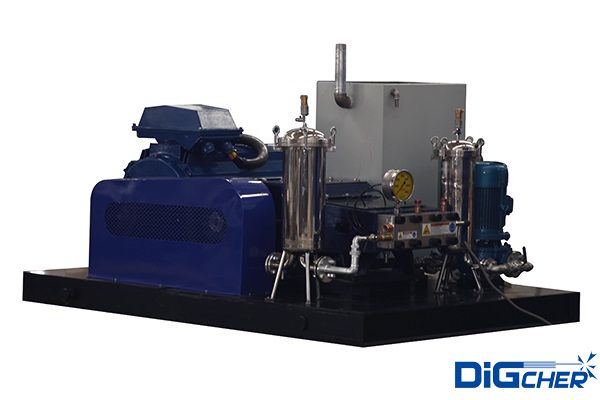 德高潔 DJS 2200/25ES 220MPa進(jìn)口電動(dòng)超高壓清洗機(jī)采用110kw電機(jī)作為動(dòng)力源,高壓泵為美國(guó)原裝進(jìn)口三柱塞泵,具有可靠的電力端重負(fù)荷機(jī)械的強(qiáng)度和耐久性。柱塞為高強(qiáng)度合金不銹鋼氮化熱處理制成,能承受超過20000PSI(1400bar)的連續(xù)工作壓力。
