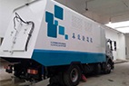 4、按全啟按鈕,引風機首先啟動,高壓水啟動;四個刷盤下降至工作高度,旋轉(zhuǎn);三個負壓吸口導流罩也降至工作高度;車啟步、工作開始。道槽、路基和路面同時清潔。