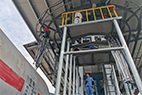 2、三維洗罐器進(jìn)給機(jī)構(gòu)是實(shí)現(xiàn)高壓清洗機(jī)與罐車口的精準(zhǔn)對位,由對位機(jī)構(gòu)和內(nèi)架、外架等組成,配有電機(jī)功率4 Kw的油站。三維洗罐器進(jìn)給機(jī)構(gòu)布置在罐車軌道安全線外,與鐵路線平行;外支架上安裝有液壓絞車,液壓絞車通過鋼絲帶動(dòng)對位機(jī)構(gòu)上升和下降,對位機(jī)構(gòu)的前端有滑塊與高壓清洗機(jī)連接滑塊可以前后移動(dòng),其運(yùn)動(dòng)方向始終與罐車軸線垂直。起升高度2.35m,提升速度可達(dá)2 m/min。